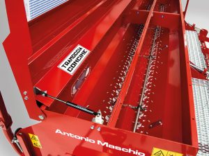 Tolva de gran capacidad en dos secciones, una para semilla y otra para fertilizante